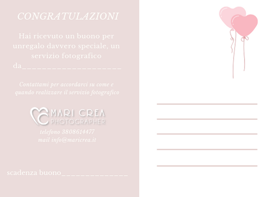 Potrai acquistare il servizio fotografico che preferisci e ricevere il buono regalo da consegnare a chi vuoi tu.