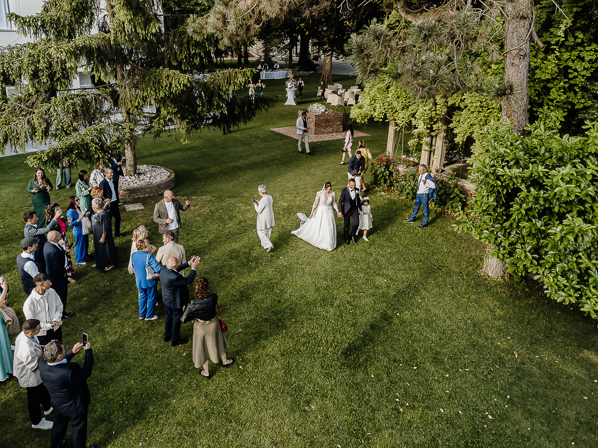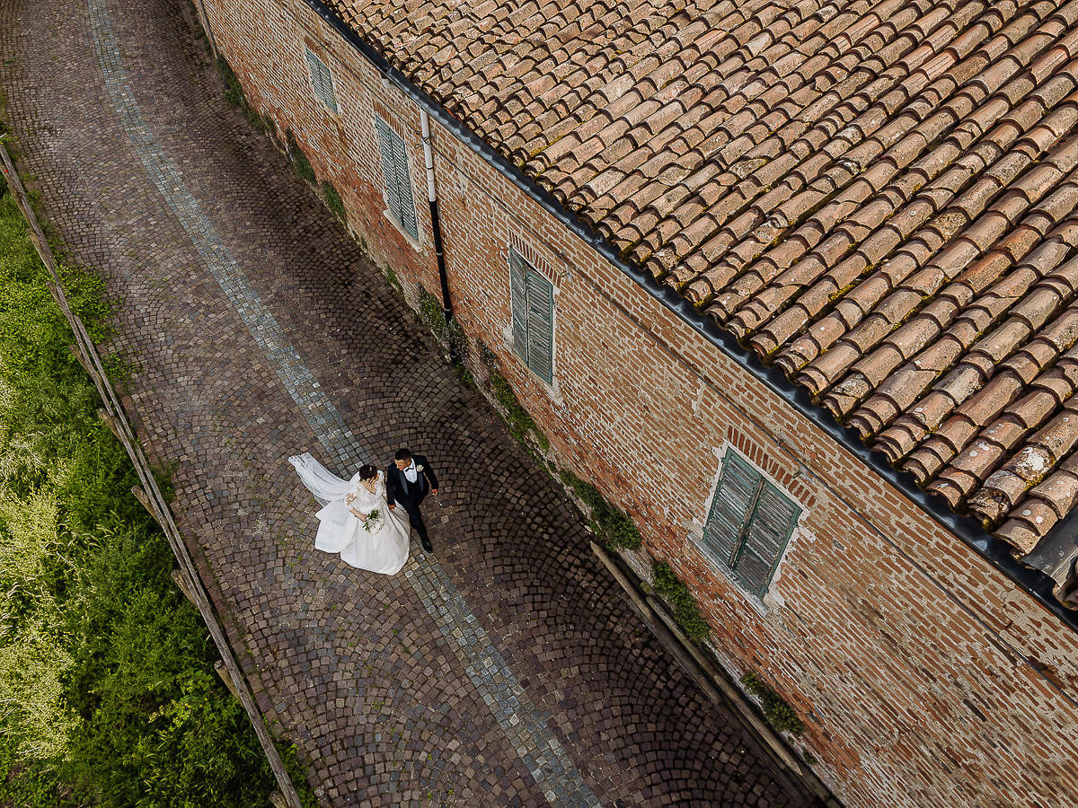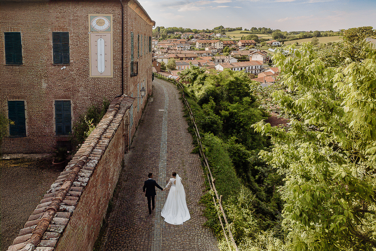 The drone allowed us to capture the beauty of the location from above, as well as the magic of the Turin hills surrounding the couple.