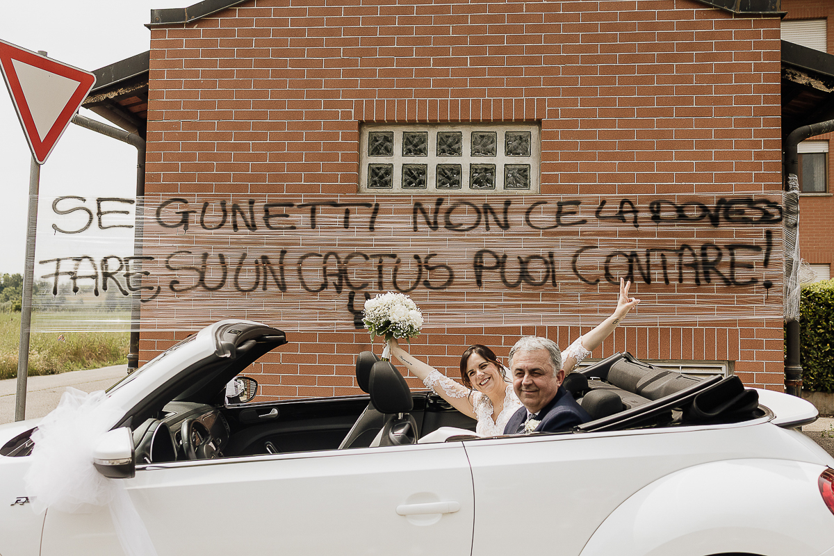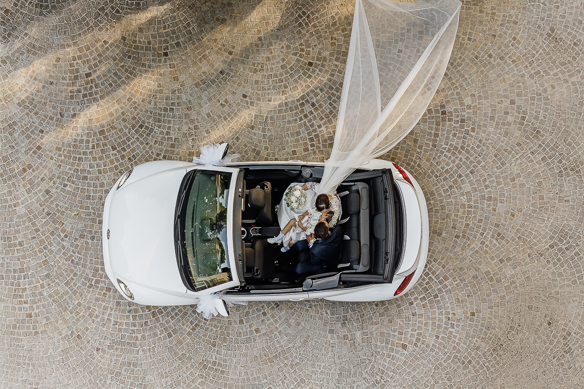 Arrival in a Beetle and the ceremony at the Church of San Giorgio