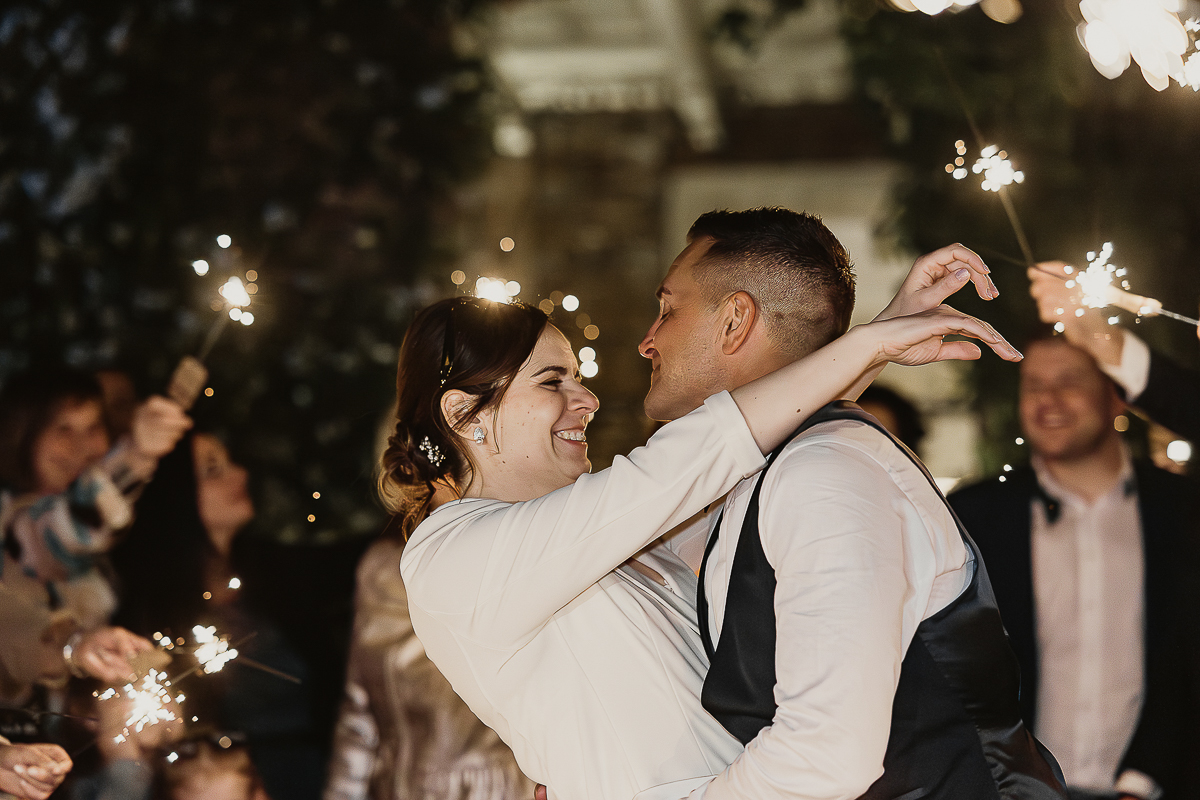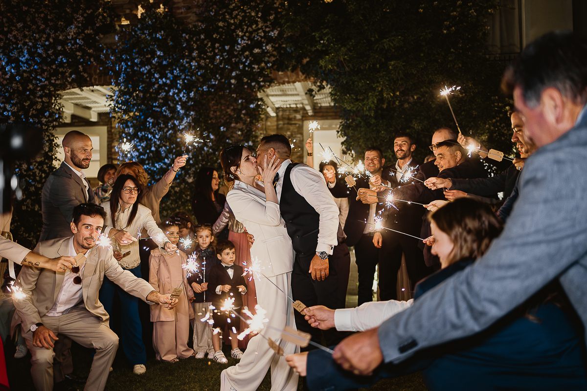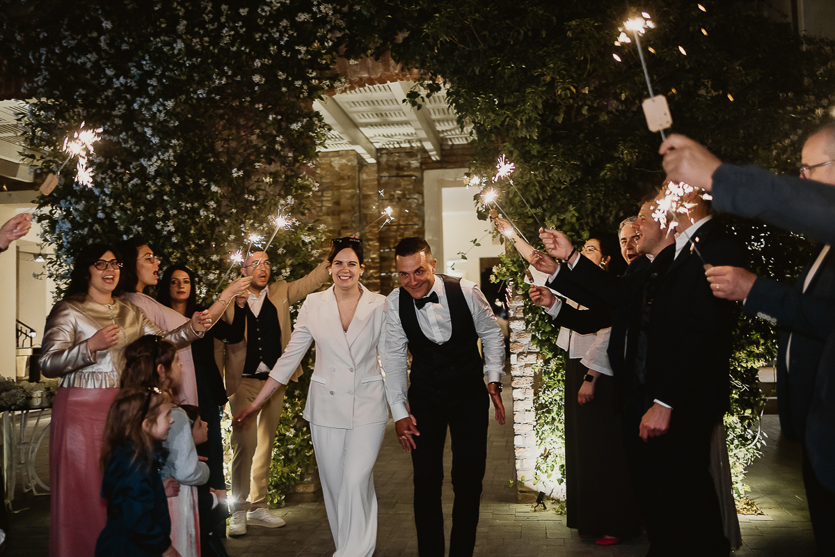 The sparkling exit was an incredibly sweet moment, lit by shimmering sparks and shared happiness.