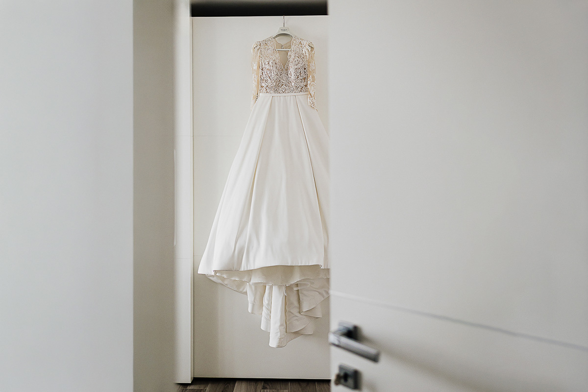 Carolina and Gabriele celebrated a romantic, elegant wedding filled with genuine emotion. The day began in Chieri, at their home, where Carolina got ready surrounded by her family. For me, it felt like reconnecting with a piece of my own personal story: I have known Carolina for many years and have photographed meaningful moments in their lives, including the baptism of little Aurora and that of her niece, Ginevra.