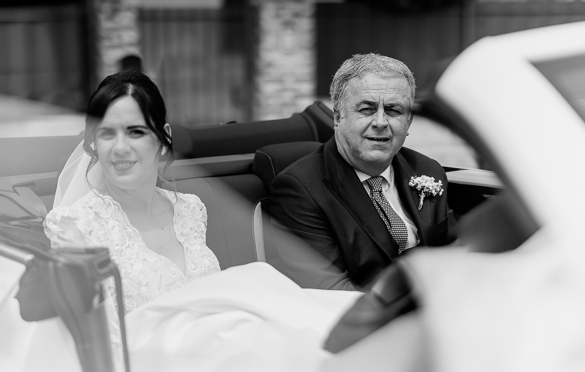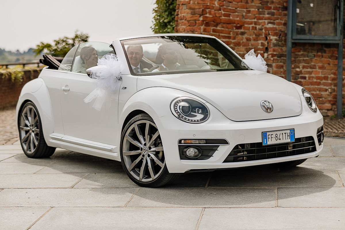 The bride’s arrival in the white convertible Beetle was one of the most romantic moments of the day.