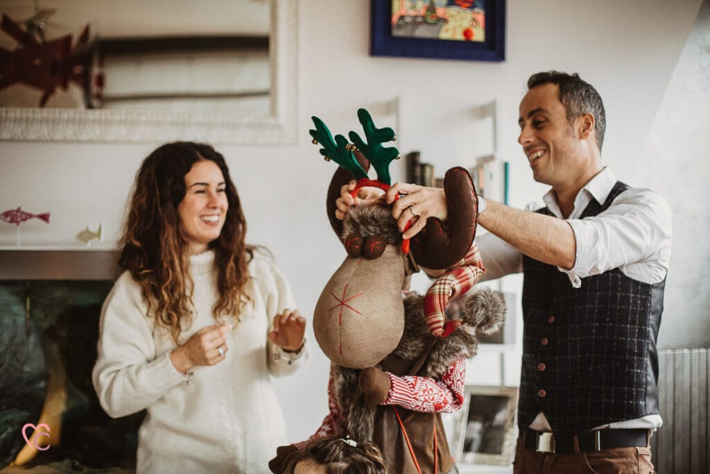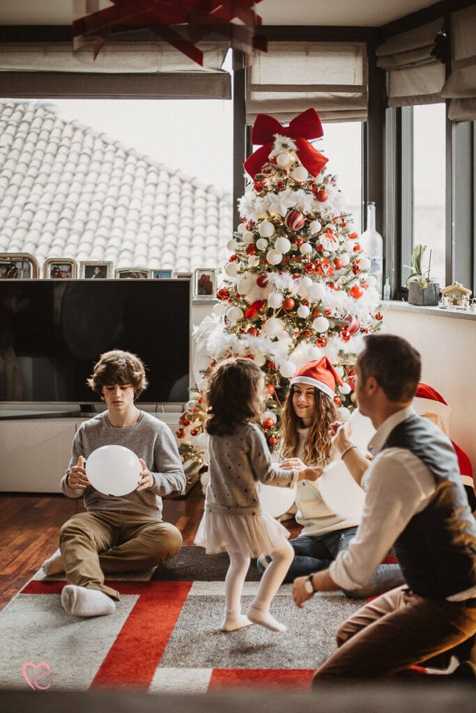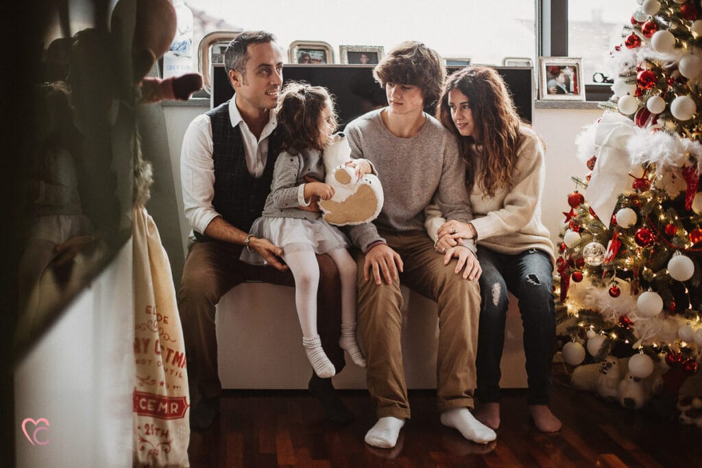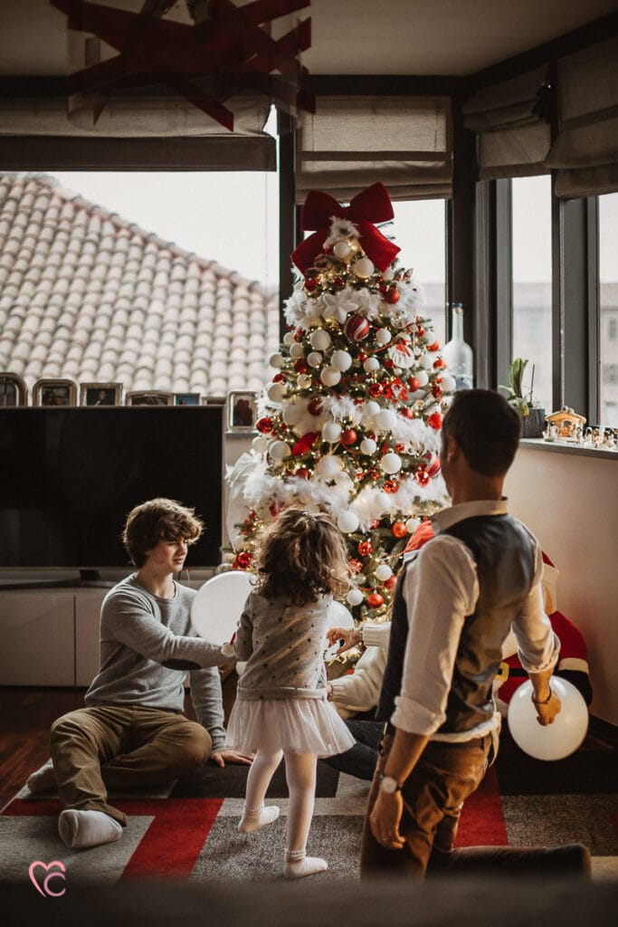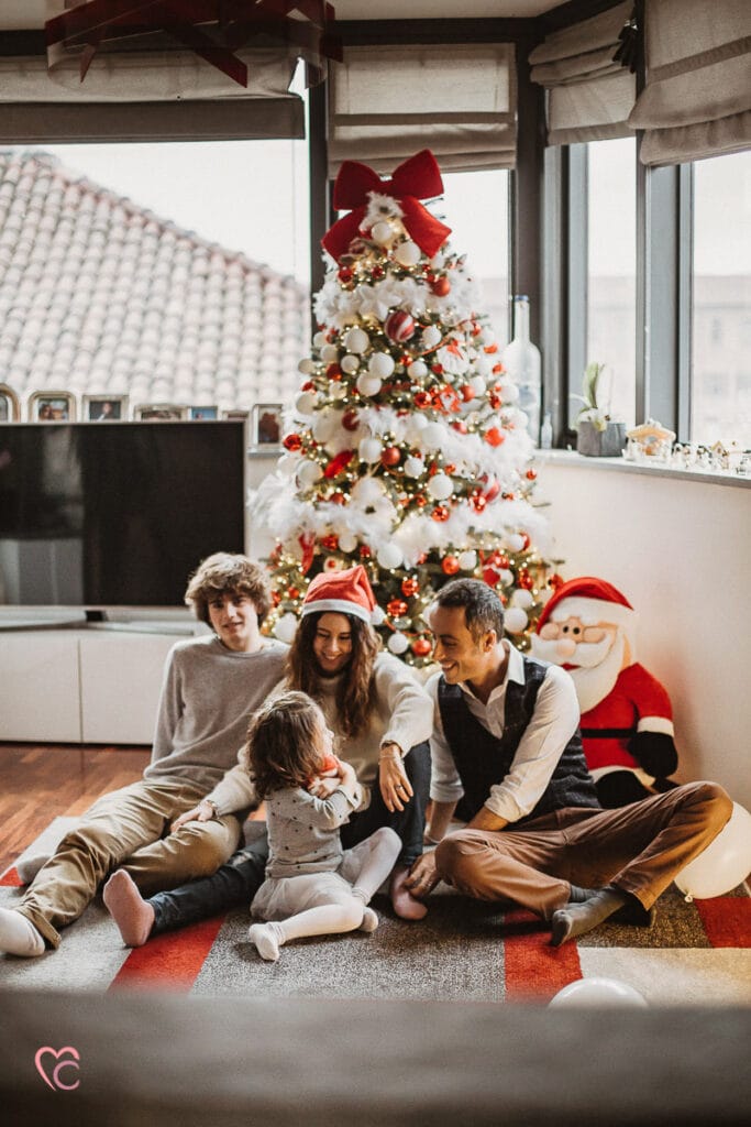 Una Christmas family session davvero speciale, non una sessione fotografica di famiglia in studio o in un set fotografico, ma a domicilio.