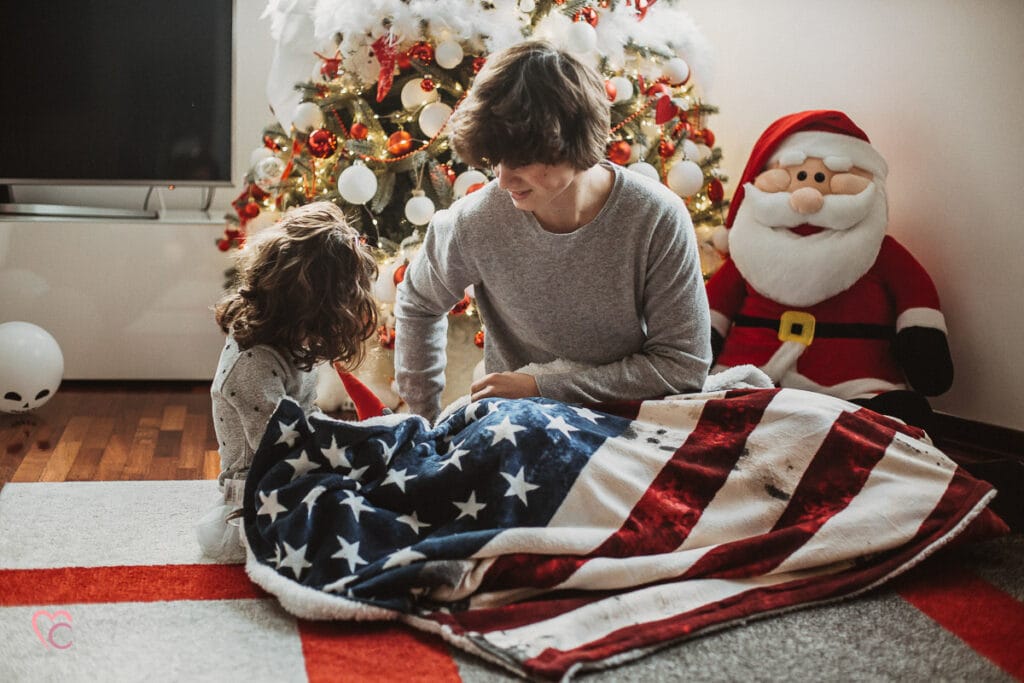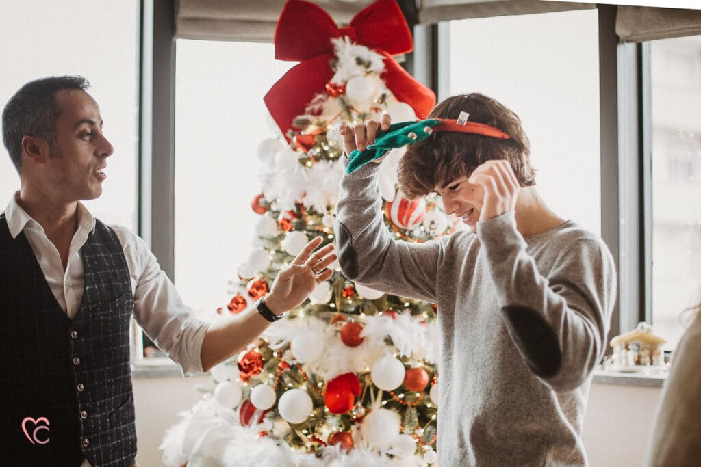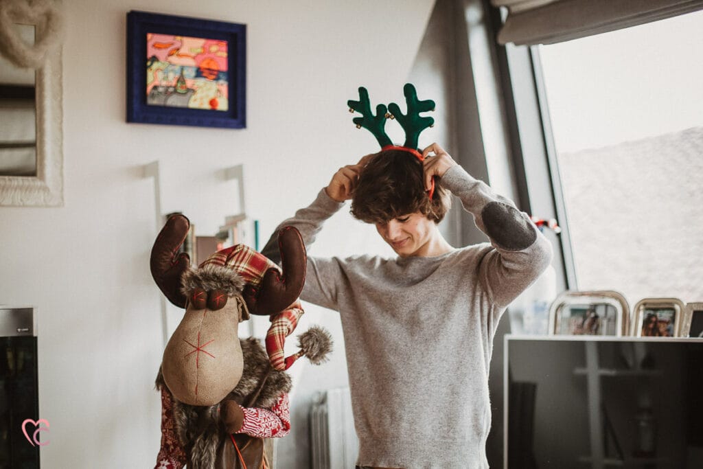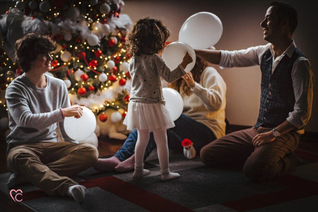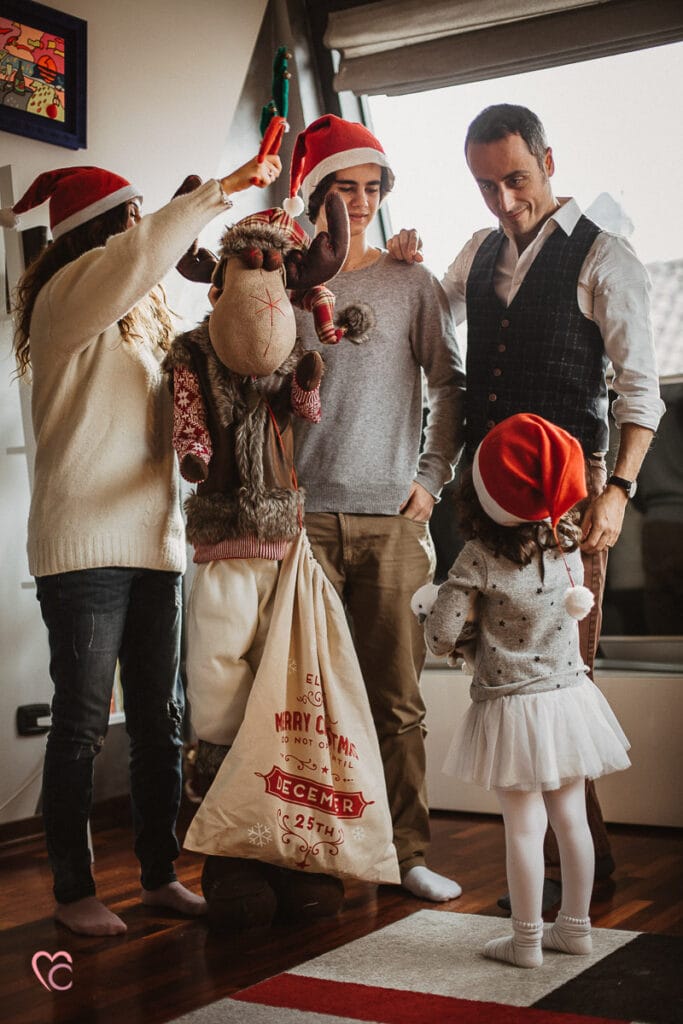 Una Christmas family session davvero speciale, non una sessione fotografica di famiglia in studio o in un set fotografico, ma a domicilio.