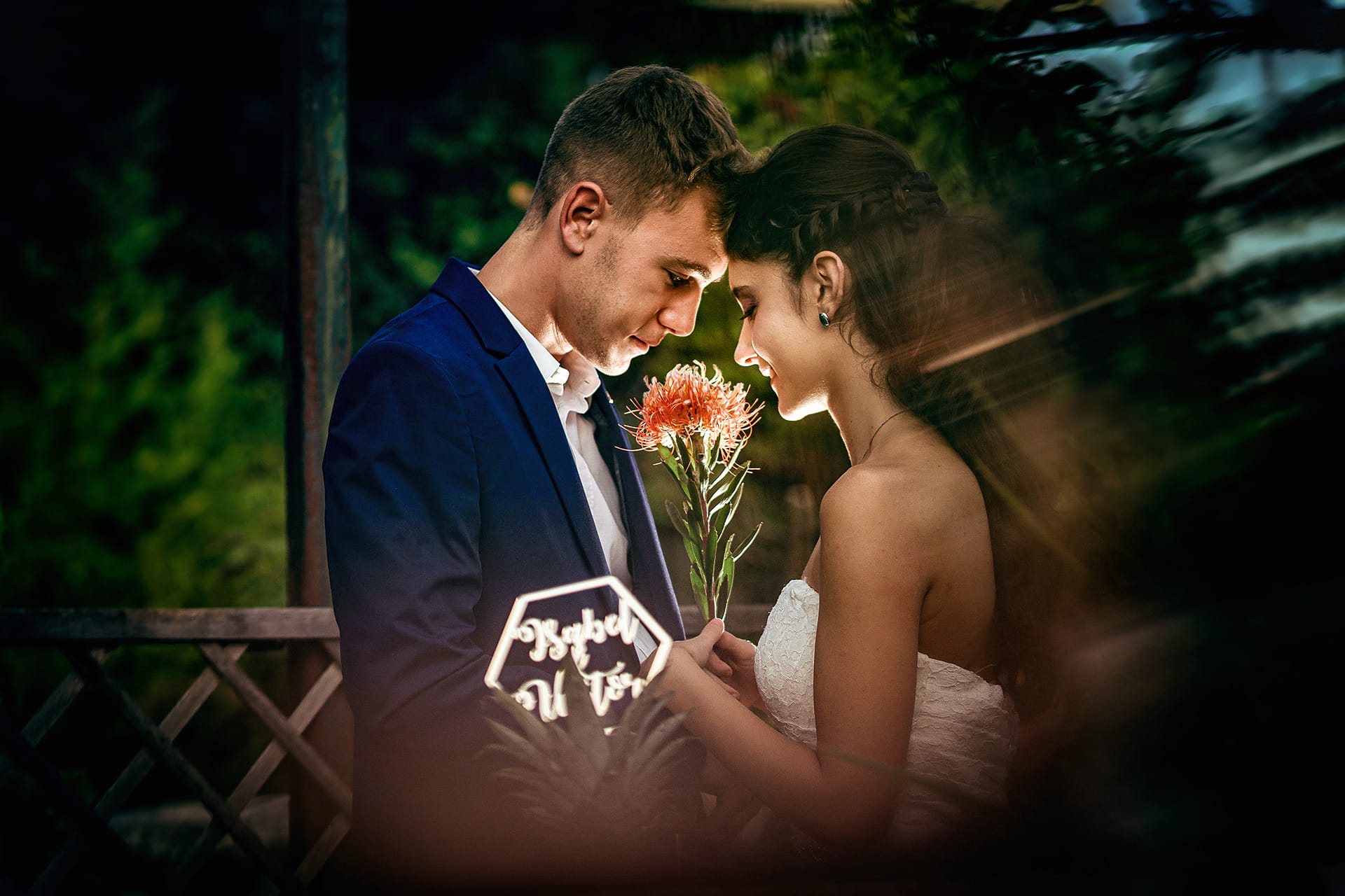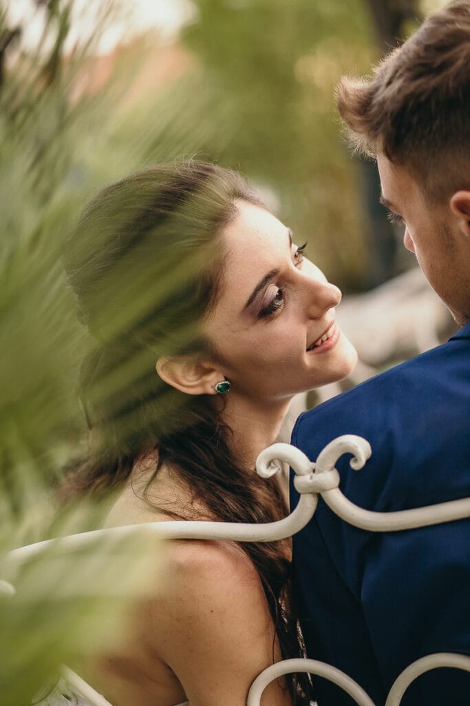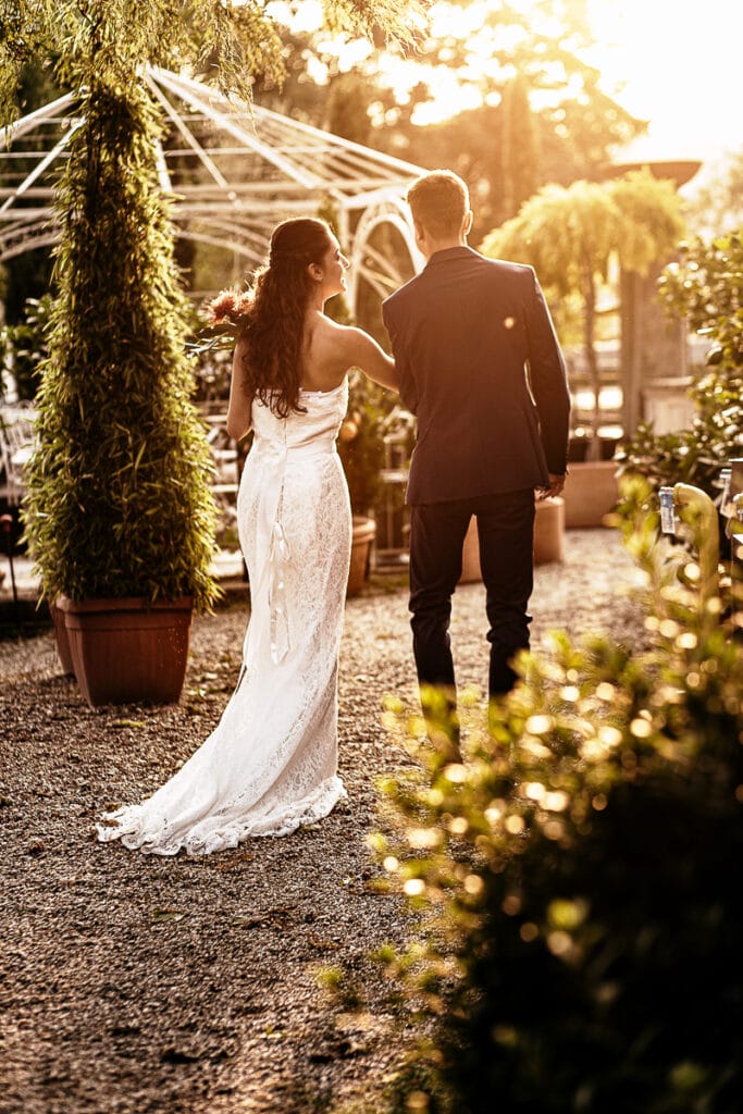 Tanto spazio al verde, al bianco e all’oro ma anche tanto colore con i fiori esotici e il magnifico tramonto che il cielo ci ha voluto regalare, quasi a benedire questo matrimonio.