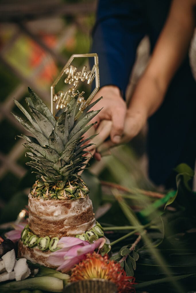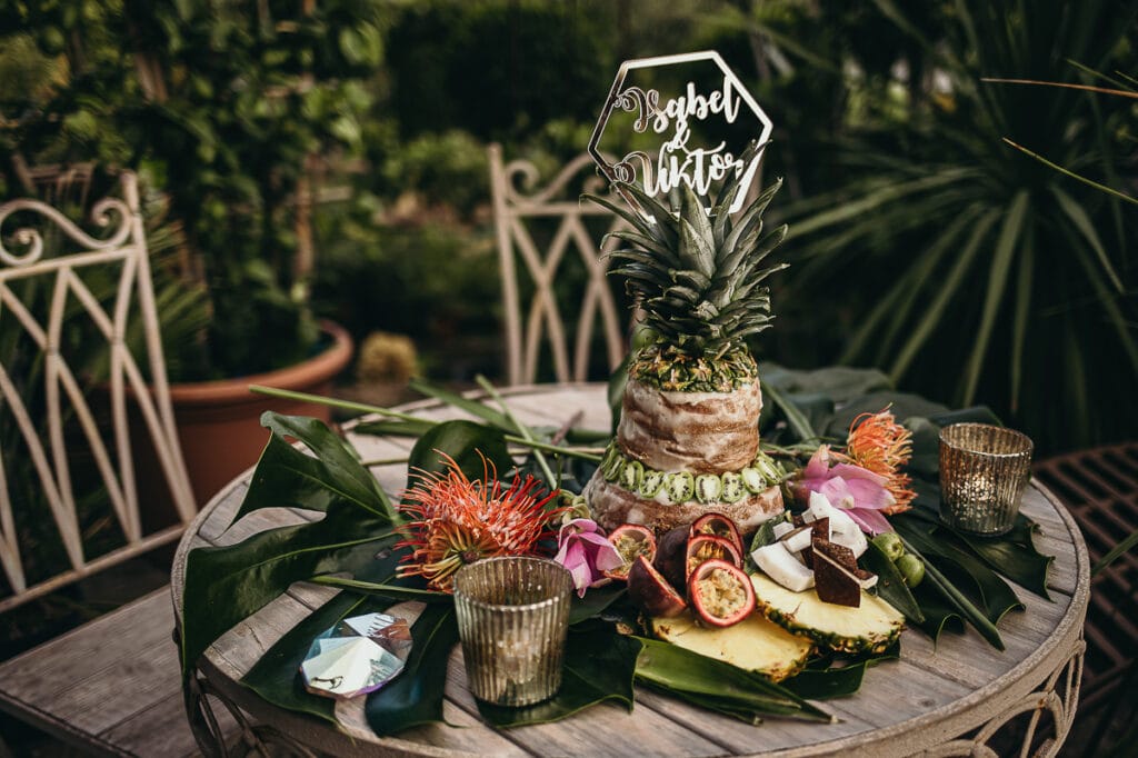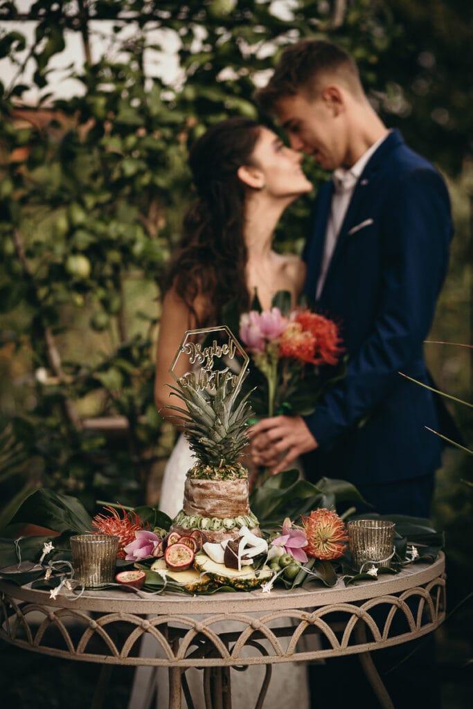 Una torta nuda al sapore e con decorazioni di frutta esotica de “Il Macino” è l’idea vincente per un vero tropical wedding.