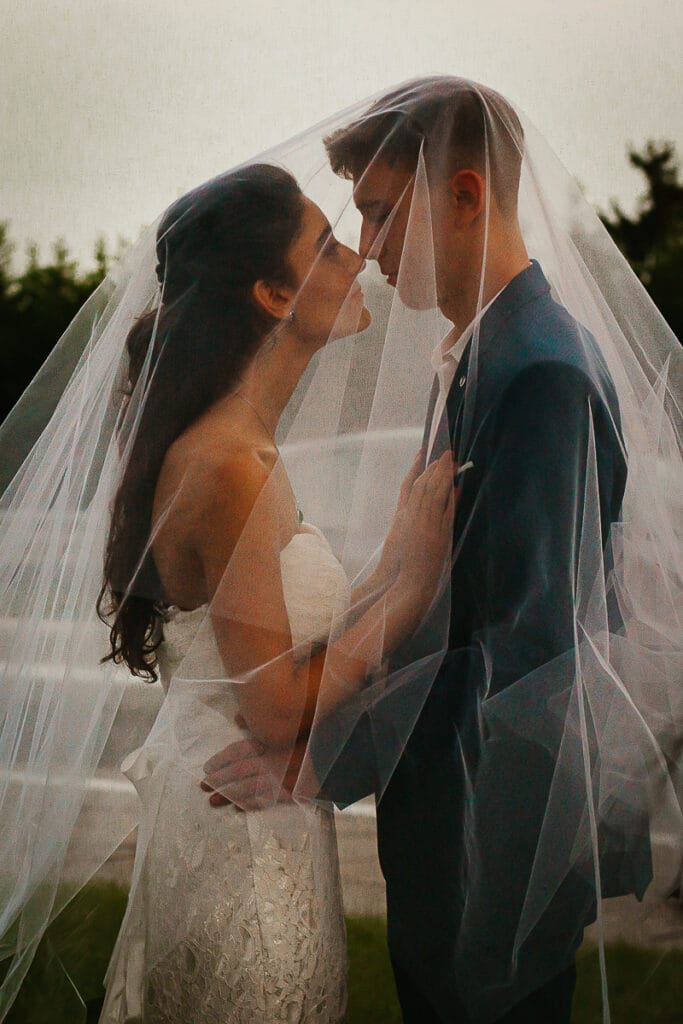 Due giovani modelli hanno rappresentato una coppia di sposi che, pur vivendo in una regione del Nord non bagnata dal mare, volevano realizzare il sogno di sposarsi su un isola tropicale.